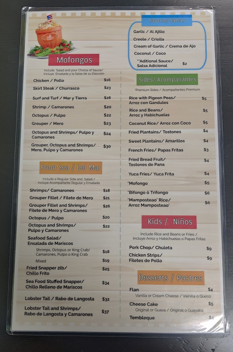The menu features an array of mouthwatering dishes, each prepared to order, ensuring freshness and flavor in every bite. Signature offerings like arroz mamposteado and mofongo con camarones en salsa de ajo blanca showcase the rich culinary heritage of Puerto Rico, bursting with unique flavors that transport you straight to the island.